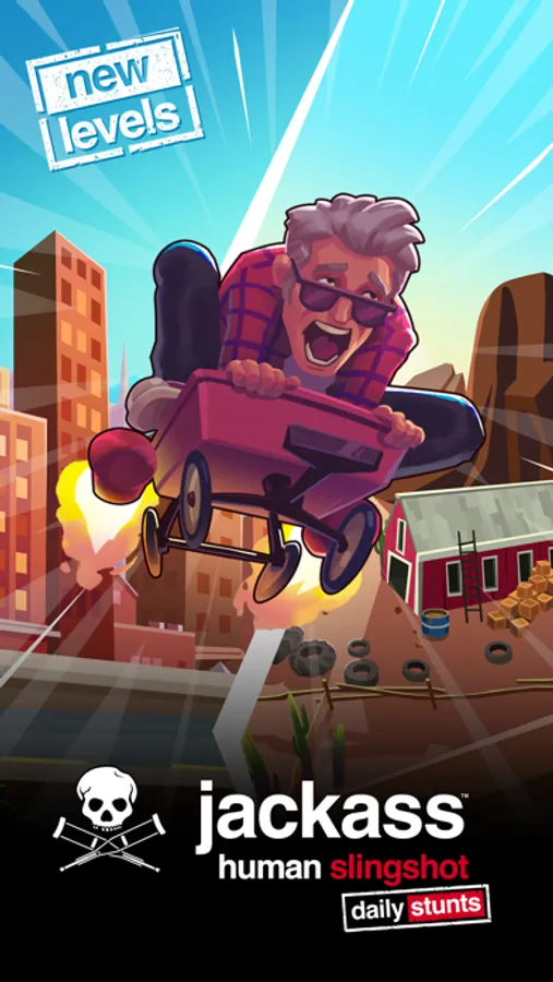 The official Jackass mobile game welcomes you to launch Johnny Knoxville high up in the air on a rocket-strapped shopping cart using the Human Slingshot. Go fling yourself across various levels to unlock vehicles and outfits, crashing into all the obstacles in your way, doing as much damage as possible to the level... and to Knoxville.