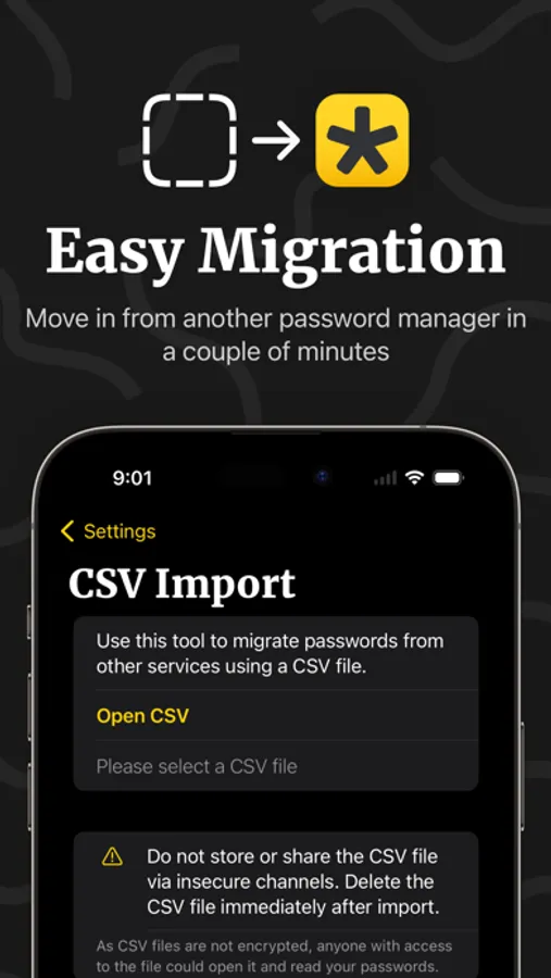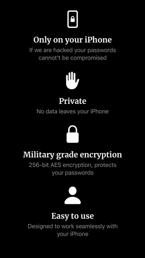 Your database "an encrypted treasure on your iPhone" is masterfully shielded under robust 256-bit AES encryption. Outsmart unwanted data breaches with a master password generated via PBKDF2-HMAC-SHA512 and a random salt, operating on open-source encryption libraries like Zetetic SQLCipher Community Edition, CryptoSwift, RNCryptor, and Crypto-JS.