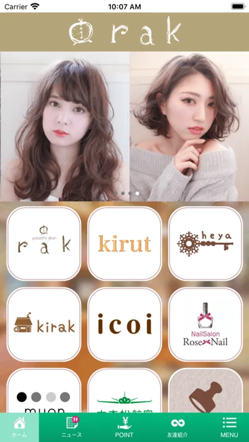 本アプリ「rak」は、ラクグループ「美容室」「ネイルサロン」「アイラッシュサロン」の専用のアプリです。