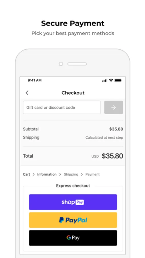 - PayPal, credit cards, Apple Pay, and Google Pay accepted