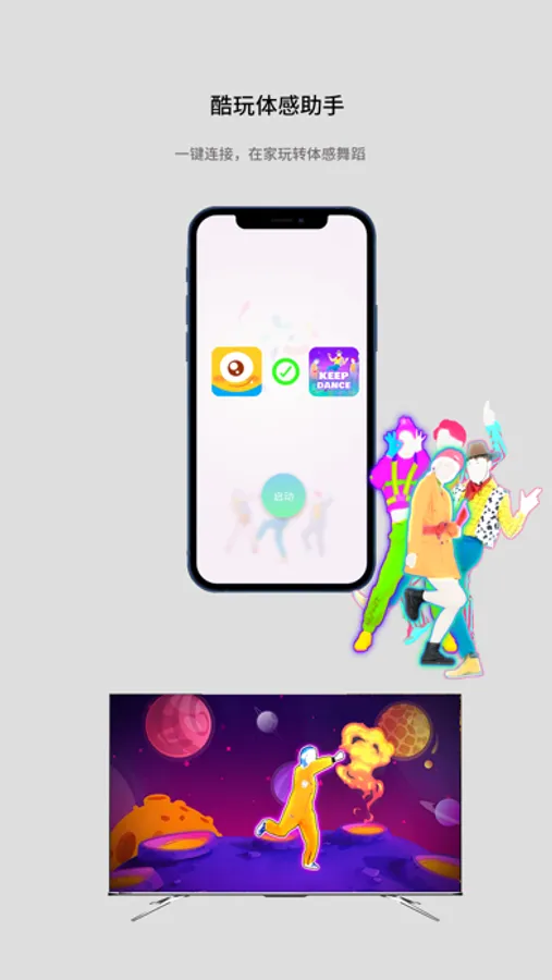 智能电视下载并打开【热舞型动】,手机端打开【酷玩AI】点击【连接】