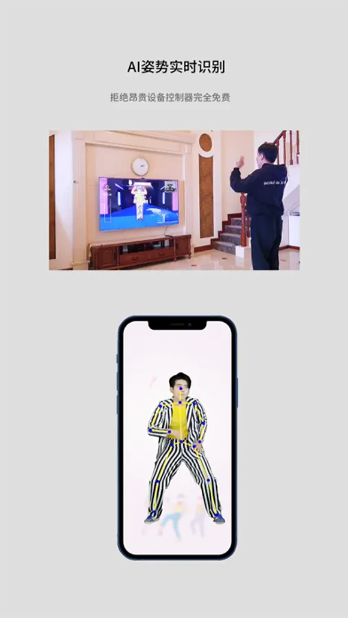 用户可以通过肢体动作实现操控电视端的游戏,如用户姿势实时和【热舞型动】