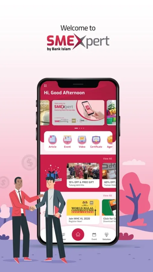 SMEXpert by Bank Islam is created with the aim of improving business practices through financial inclusion. It is a mobile application dedicated to support the SME ecosystem to enable SMEs to grow their business with ease by having the right knowledge, customised financial support and international Halal market outreach.