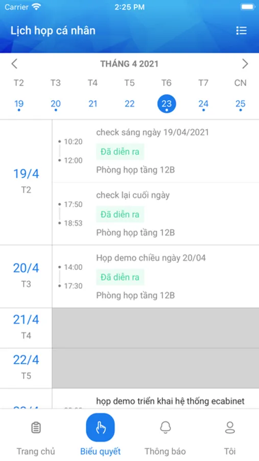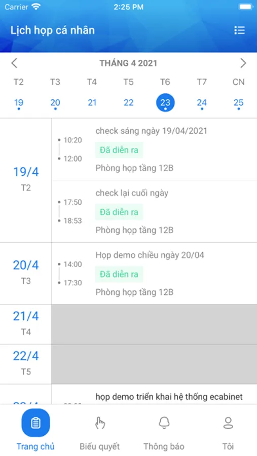 - Tham gia và điều hành cuộc họp: Xem nội dung họp, xem tài liệu họp, ghi chú cuộc họp, phát biểu ý kiến, tham gia biểu quyết.