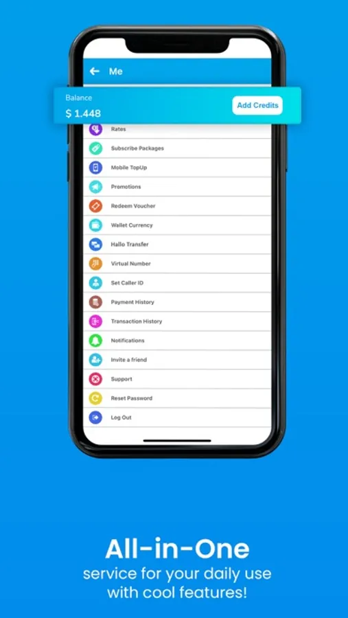 HALLOCALL CREDITS: Add credits to your balance and use them to make a mobile top-up, or make international calls, buy virtual numbers, send SMS, or buy an international calling package.