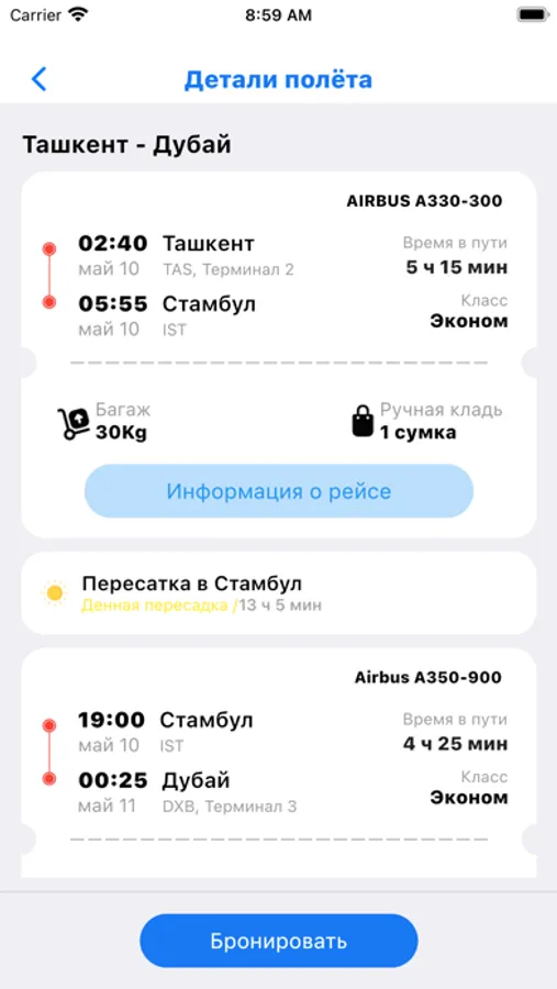 - укажите время, города вылета и прилета,
