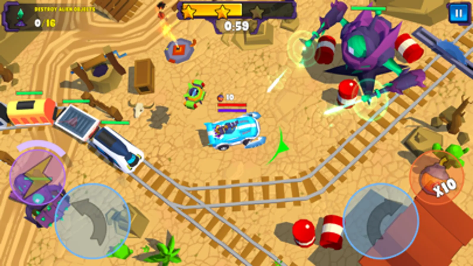 A new and exciting race adventure is waiting for you! Car Eats Car games are always story-driven and in this latest episode the plot involves friendship and survival. Save Beetlee's friends and the entire planet from a dangerous alien threat. Enemies and end bosses are ready to challenge your race and fighting skills. Conquer rivals in race battles with missions and show the invaders that you are the real race champion and master of the grid.