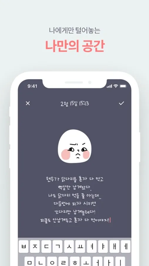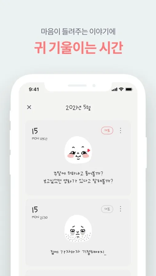 단순 간단한 다이어리 기능에 볼수록 매력적인 감정 캐릭터들로 솔직한 지금 내 기분을 남겨보세요.