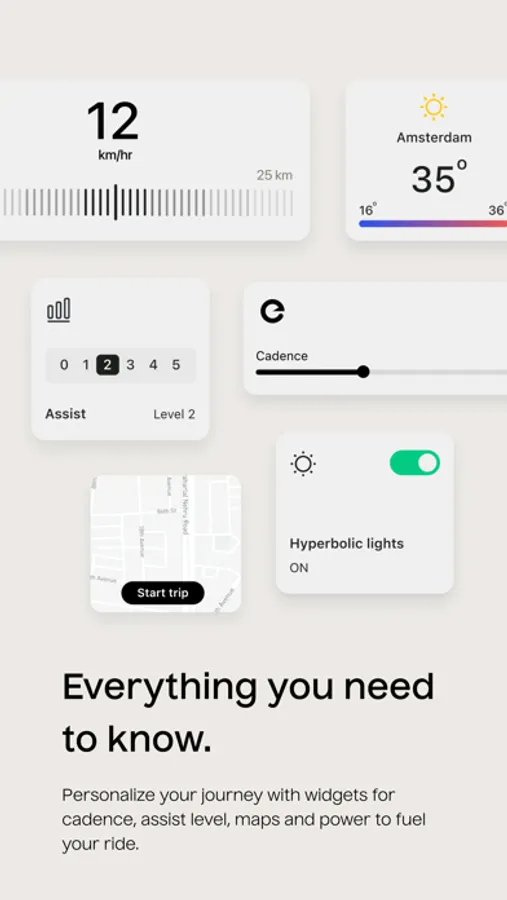With up-to-date metrics and controls for your bike, battery and commute, this Veloretti app gives you everything you need (and more). Customise your experience from start to finish.