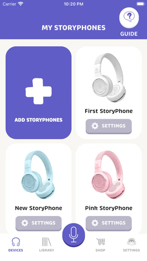 StoryPhones companion app allows parents or guardians to perform the initial setup of device and content, control it remotely, enable the purchase of content from our curated marketplace. In addition, the app can be used to create audio content with inbuilt recording functionality which can be linked to shields for independent playback.