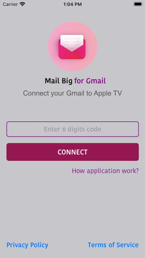 - Open 'Mail Big for Gmail' Apple TV App and tap ‘Connect to Gmail’ and you will see 6-digit Authentication Code.