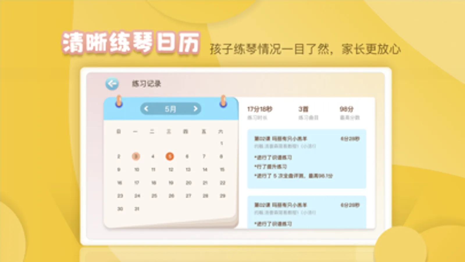 练琴小助手实时陪伴,及时鼓励,让练琴更有趣,孩子更喜欢练琴