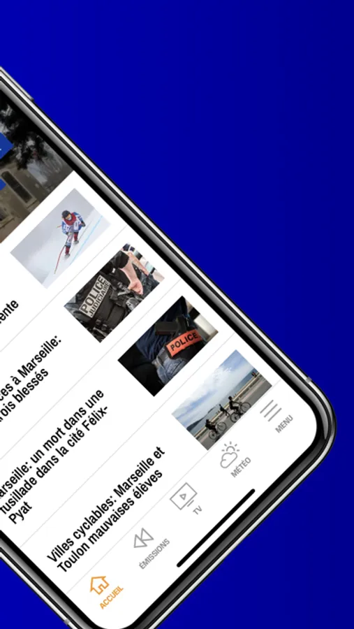 • Le menu qui rassemble le meilleur de BFM Marseille dans votre application (Actualité, Vidéos, Sport, Immo, Info-trafic…)