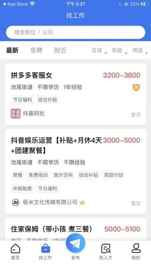 2、为你带来了便捷的接单赚钱机会,打开手机定位就能为你呈现附近招工信息了;