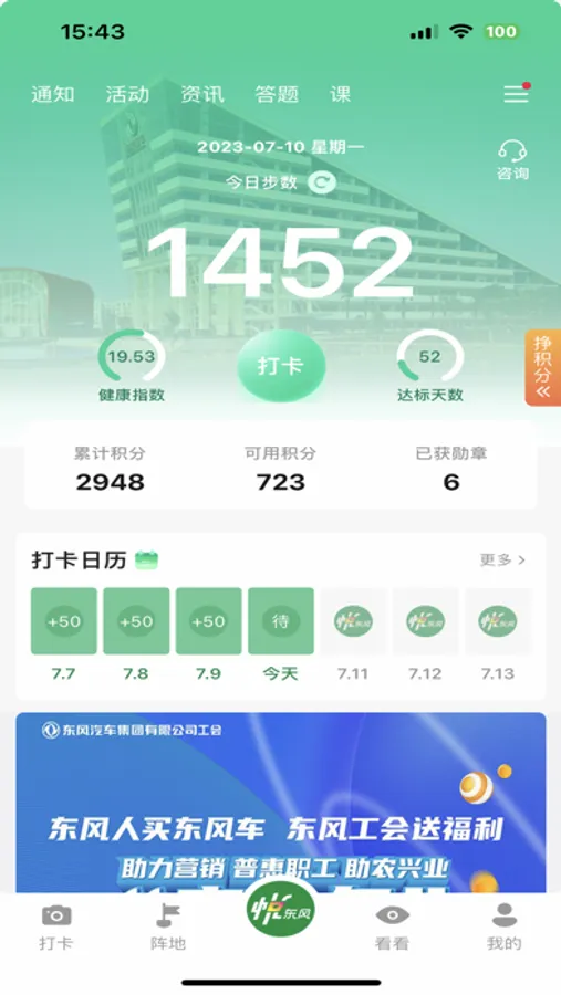 悦东风为用户提供文体活动平台,日常打卡,自我展示,参加集体活动。悦东风app集成了HealthKit框架,在您打卡的过程中我们将会获取您的步数用来打卡使用,我们将严格遵守用户隐私协议。