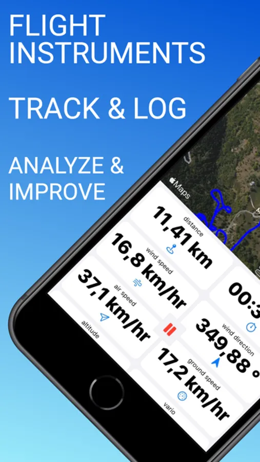 Track and log your flights while improving them thanks to the various instruments (Vario, wind,...) providing useful information during the flight. Also on Apple Watch.