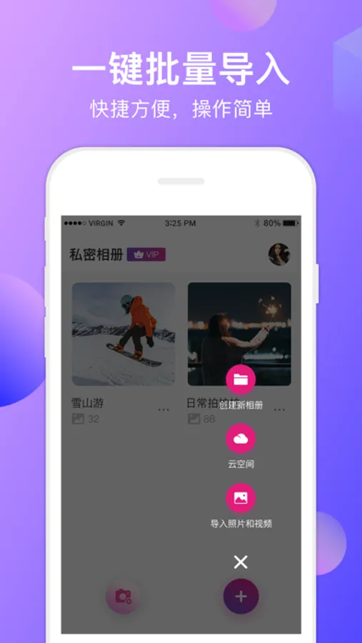 将相册图片视频批量导入加密相册,您可以保护自己的隐私,保护自己的照片和视频,并节省手机空间。