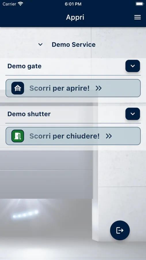 Questa app permette all'utente di aprire o chiudere le serrande del cancello tramite il telefono.