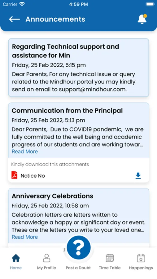 All school notices and formal communication, awards, achievements, social media posts can be checked on a single click.