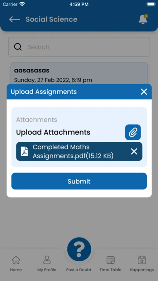 Accessing subject wise doubt lists raised by students and answering back using optional attachments anytime anywhere.