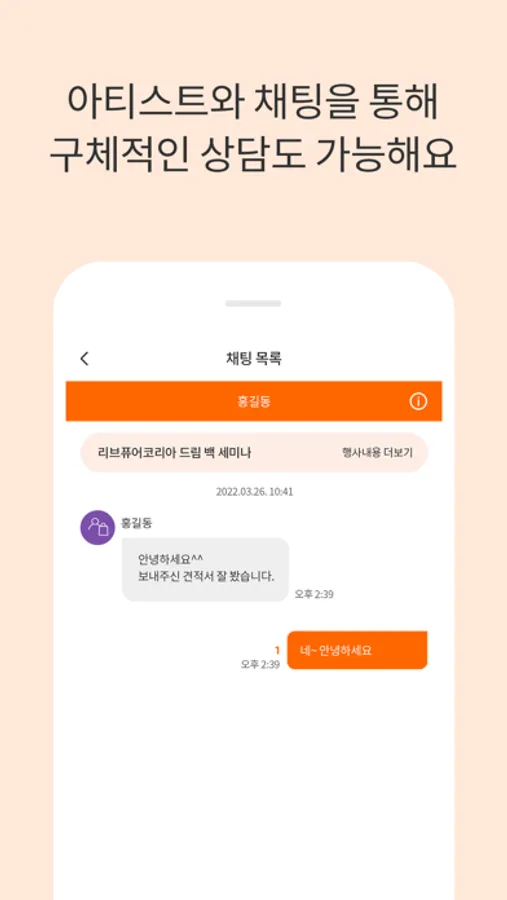 상세조율.결제.섭외까지 채팅으로 실시간 소통하세요.