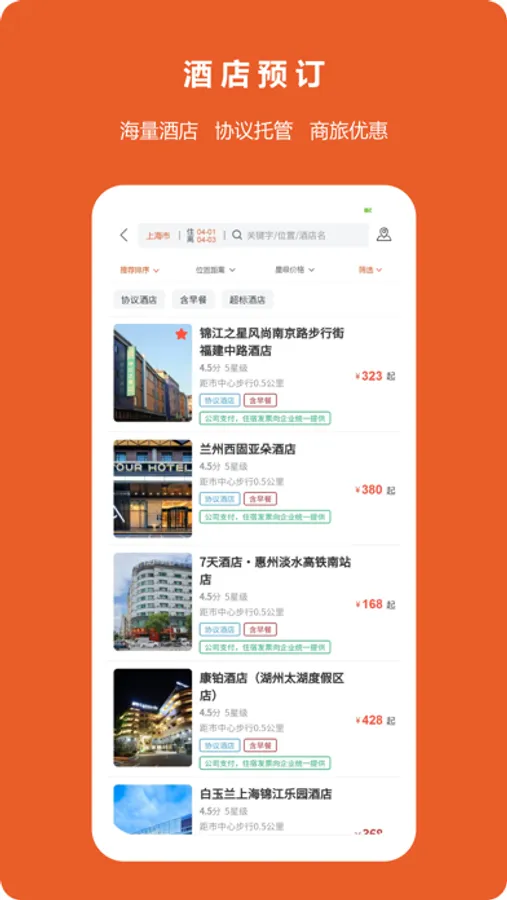 平台支持全球多个国家和地区几万家酒店房间在线预订,通过优化协议酒店、酒店优先展示、多样化价格呈现,满足企业的多样需求,为企业差旅节省成本。