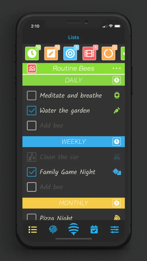 Lists, Notes, Reminders, Goals, Routines, Timers, and Calendar – All in one simple and colorful app. Get your life buzzing!