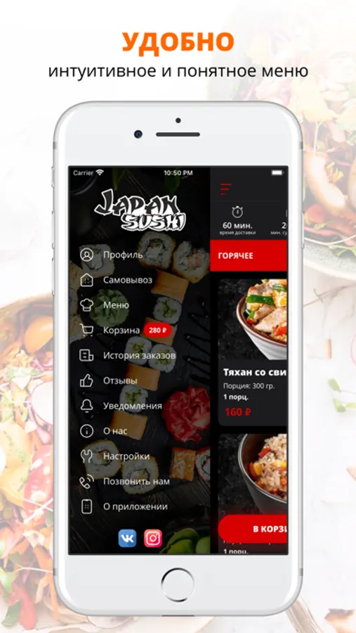 Компания “Япония” рада предложить Вам блюда японской и итальянской кухни. В нашем меню широкий ассортимент холодных и горячих блюд, а также напитков.