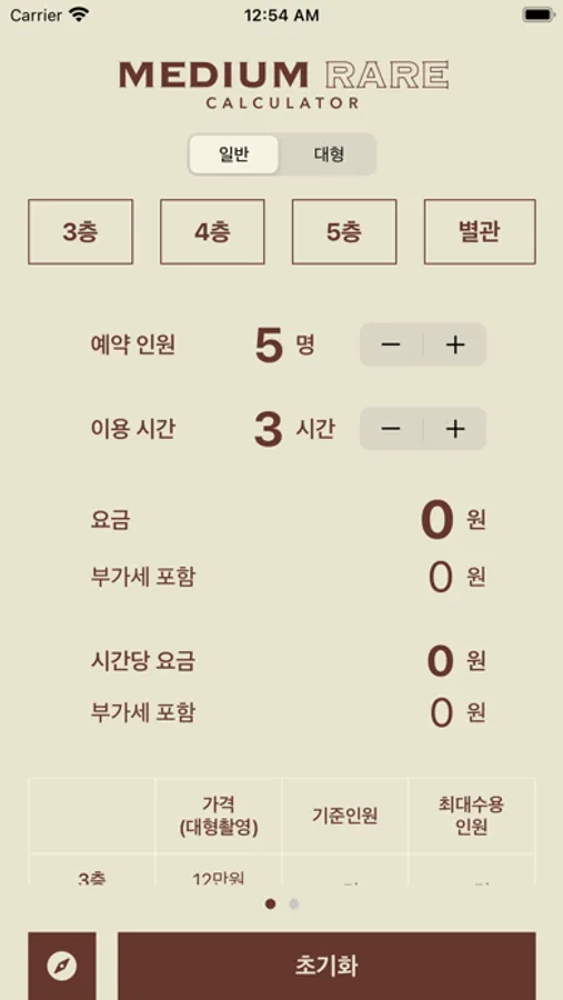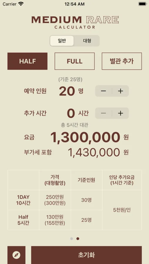 Medium Rare Studio 예약에 필요한 요금을 계산해주는 계산기 입니다.