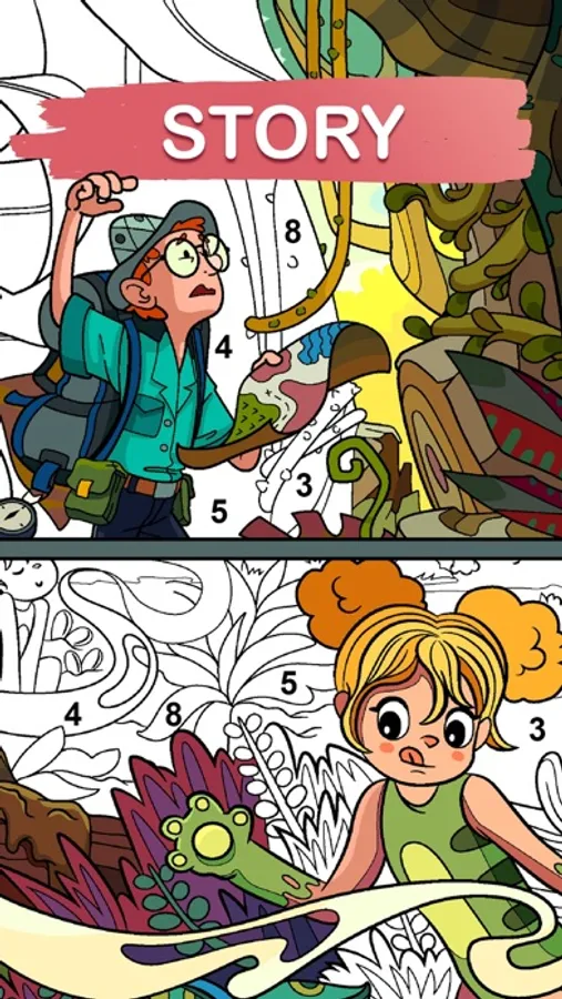 This app comes with tons of different artworks from our talented artists and unique features. You will have a chance to explore all the creative paintings grouped into categories such as nature, flower, food, human, animals, and especially the story that tells you lots of tales. This app updates new artworks every day, which means you can color your imagination as much as you can.