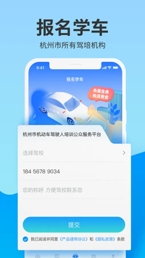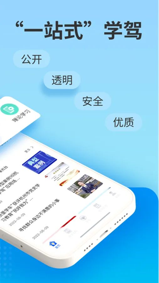 从选驾校、报名、线上理论学习、线上预约培训、线上预约考试到拿证,让学员线下少跑多趟。