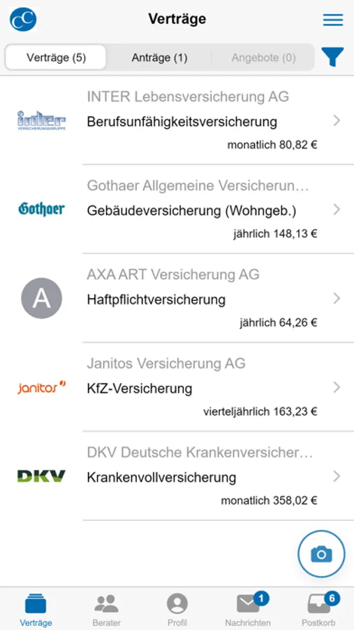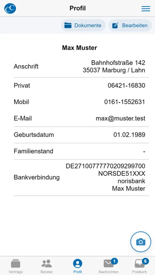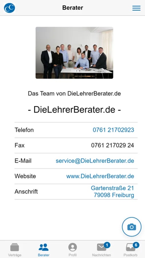 Mit DieLehrerBerater haben Sie Ihre wichtigsten Vertragsdaten immer bei sich. Sie haben die Möglichkeit, Ihre Daten unterwegs bequem zu aktualisieren und Änderungen kurzfristig durchzuführen. Somit bleibt Ihnen der Griff zum Telefon oder das Schreiben einer E-Mail oftmals erspart und sollten Sie doch mal Unterstützung benötigen, können Sie sich direkt mit Ihrem Makler in Verbindung setzen, mithilfe der nützlichen Chat-Funktion. Ihre Dokumente stehen Ihnen in der App dabei als handliche PDF-Datei zur Verfügung und Sie können einfach weitere Dokumente scannen und zu Ihren Vertragsunterlagen aufnehmen.