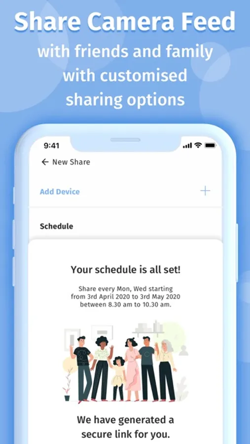 Securely share your Camera's with your loved ones, choose the permission or grant complete access, let them view all day or for a fixed time, it's all under your control.