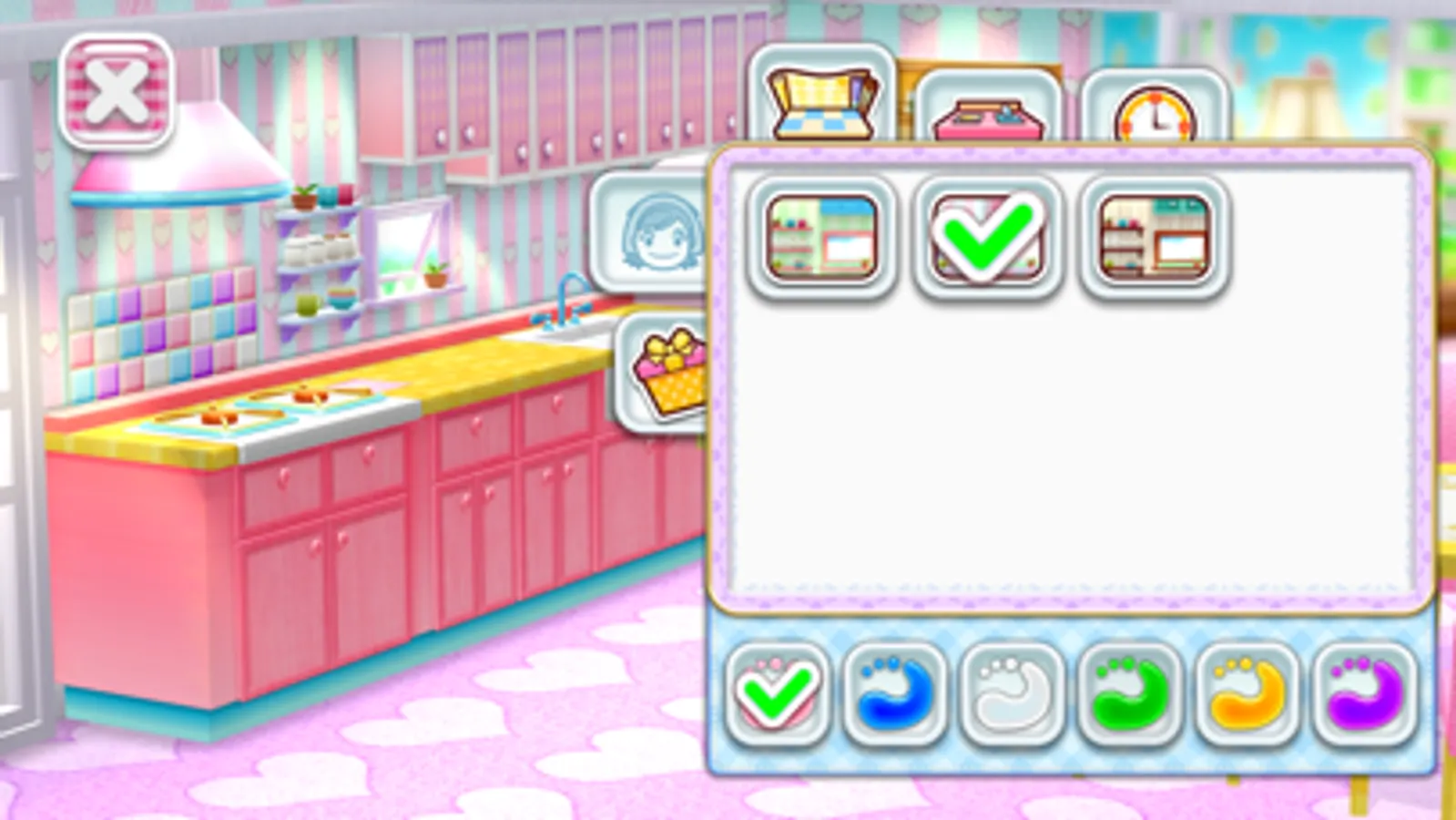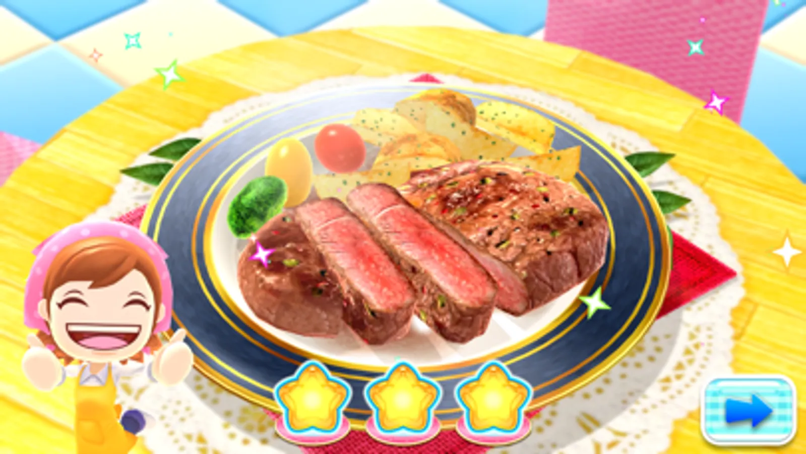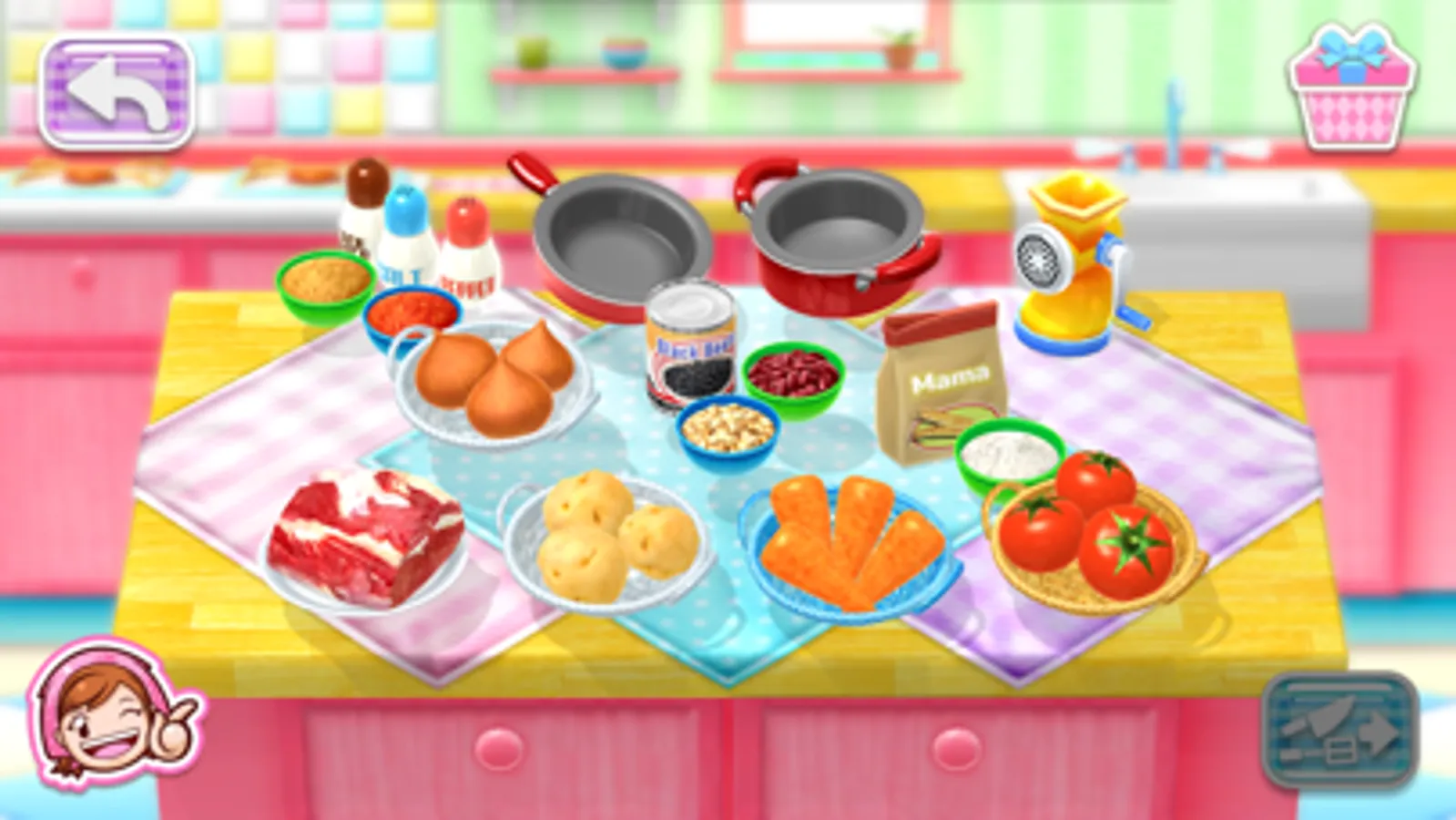 Collect cooking points by completing dishes to get new designs for Mama's outfit and accessories.