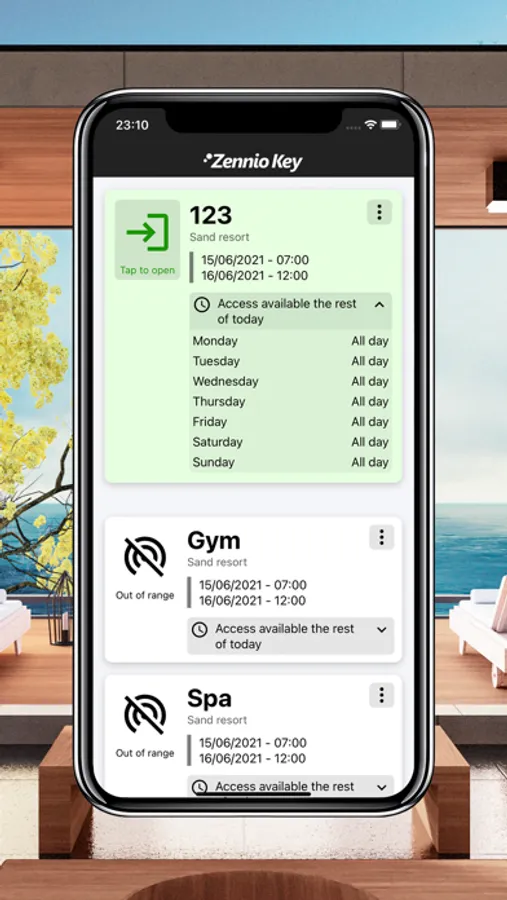 Zennio Key app allows you to download in your smartphone the Bluetooth key to access your room during your stay in a hotel with the Zennio Access Control system installed: Z-Access. Zennio Key enables contactless access, completing the check-in process already available in many hotels where the guest is not required to personally go to reception to pick up the room key.