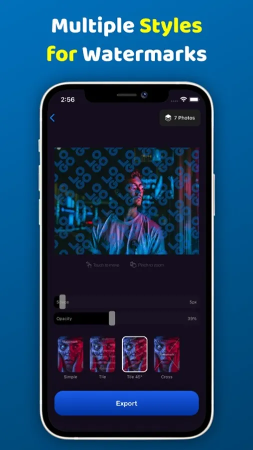 Fastest way to add image or text watermark to multiple Photos & Videos in only one export request.