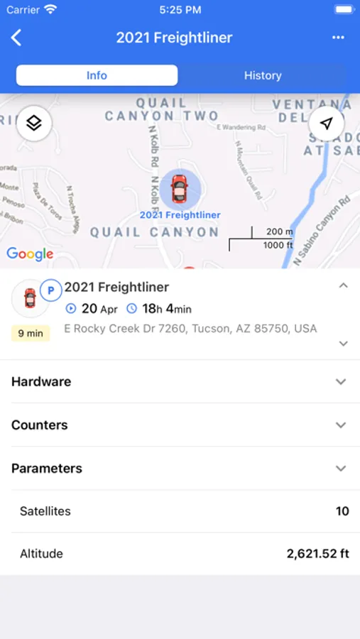 - Tracking mode. Monitor the unit’s exact location and all the parameters received from it.