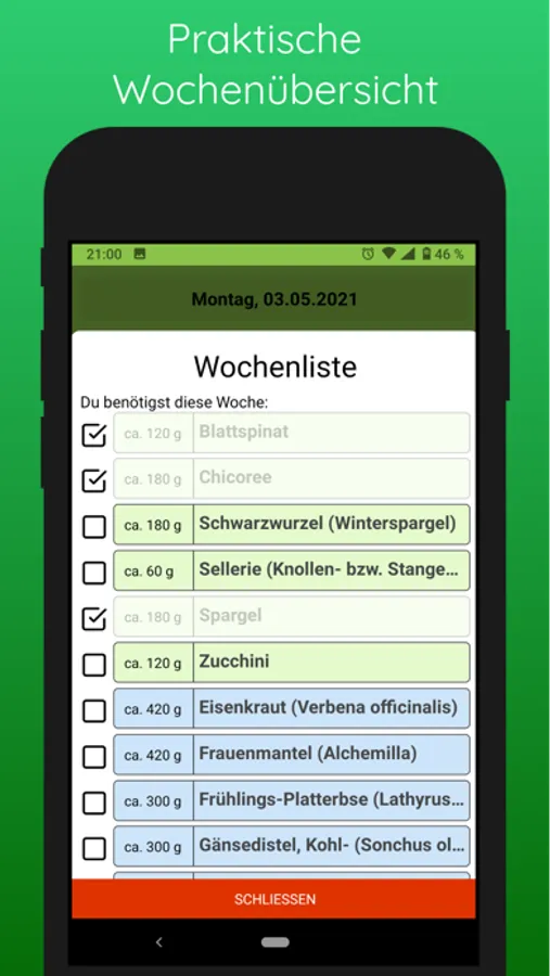 - Wochenübersicht: Zusammenfassung was du diese Woche als Futter benötigst