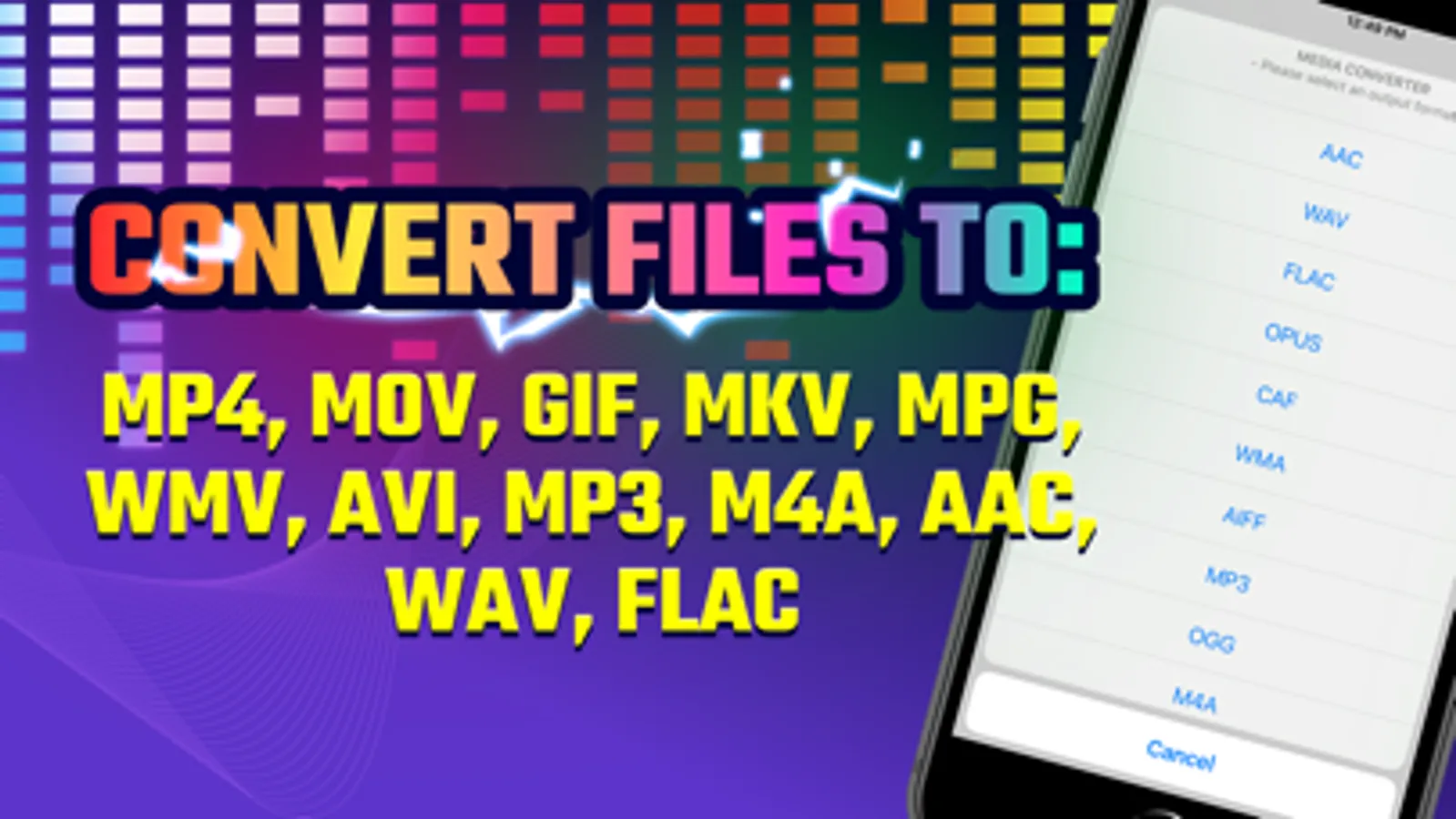 MP3, M4A, AAC, OGG, WAV, FLAC, WMA, AIFF, CAF, ADX, OPUS