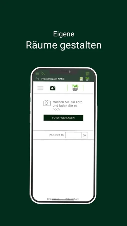 Mit TWG Dein Raum wird Ihre Bemusterung noch kundenindividueller: Nehmen Sie einfach ein Bild Ihres Raumes mit dem Smartphone oder Tablet auf und laden dieses in die APP hoch. Nach ein paar Sekunden können Sie Ihre zuvor ausgewählten TWG-Produkte aus der Merkliste oder aus der Produktübersicht in Ihr Raumbild einfügen. Konfigurieren Sie schon jetzt Ihren zukünftigen Raum mit TWG-Produkten.