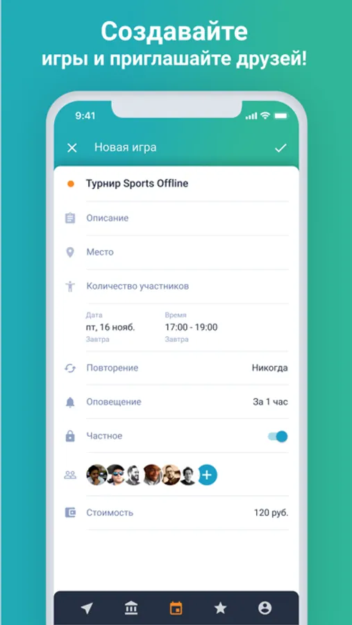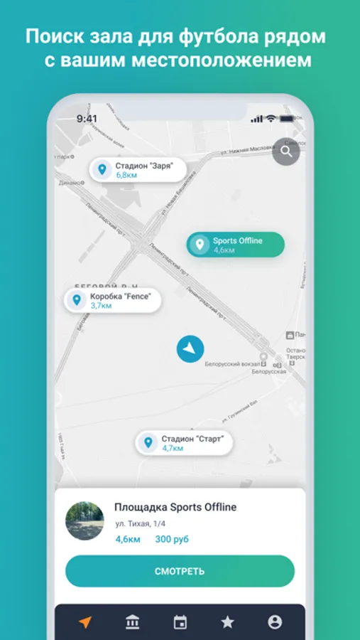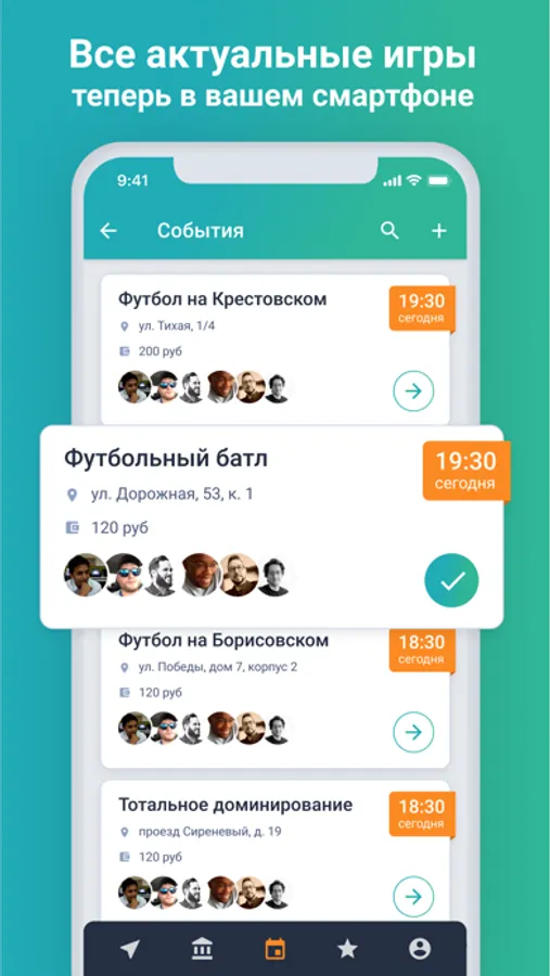 Любительские команды могут найти поле для игры прямо в приложении. Все доступные футбольные поля отмечены на карте. Нужно лишь выбрать подходящую площадку, и если она свободна, создать на ней событие. Всё что нужно — указать время, дату и требуются ли игроки со стороны.