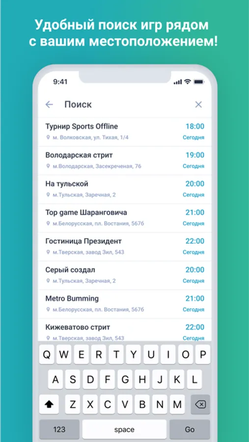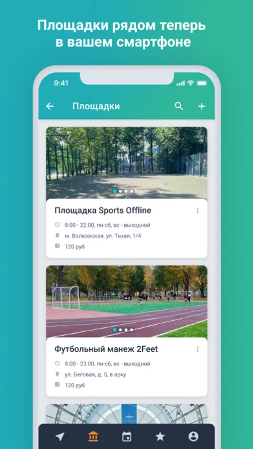 Поиск футбольных матчей и площадок