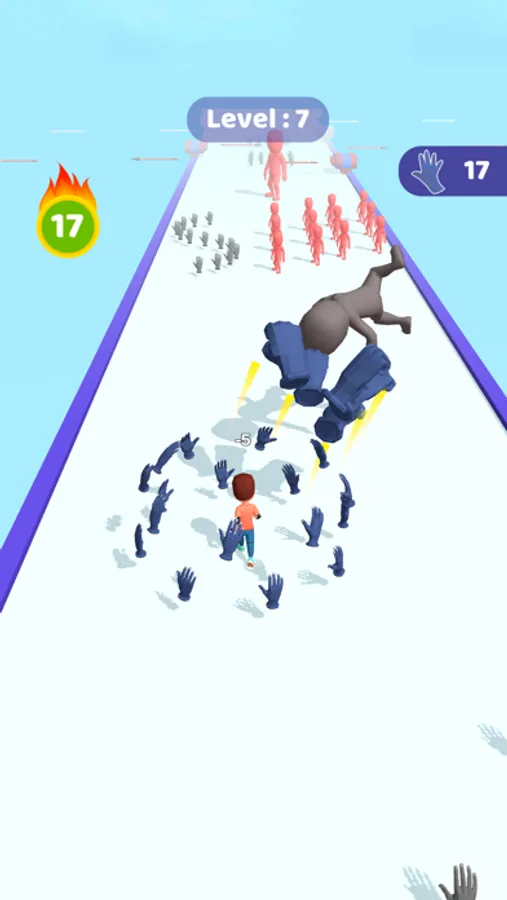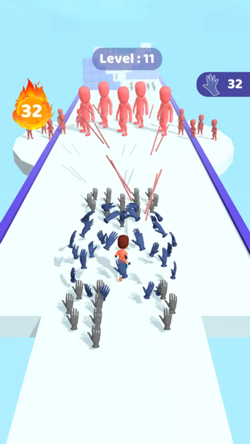 Collect the hands to protect yourself from obstacles and enemies, and use your super power in the hardest moment and punch them all.