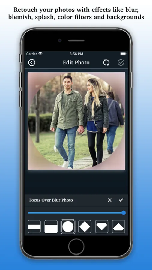 This app helps you to make pro level photo from ordinary photo with filter effects, focus effects, color filters, blemish effects, splash effects, text on photo and overlays.