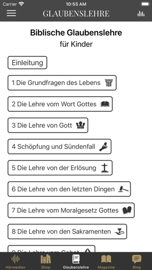 Furthermore, in this app there is the Biblical Faith Teaching for Children, which parents can learn with their children. This can familiarise children with the truth of Scripture. The faith teaching consists of questions and answers and matching Bible verses. The verses impress the content of the Bible on the children, and the Faith Doctrine gives them carefully and systematically summarised truths and central principles.