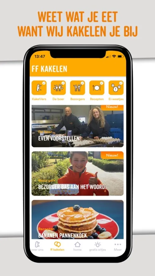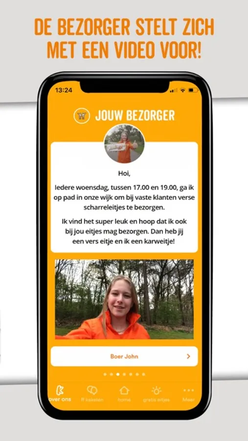 Download de unieke KakelVers app en jouw enthousiaste bezorger stelt zich met een leuke video aan je voor.