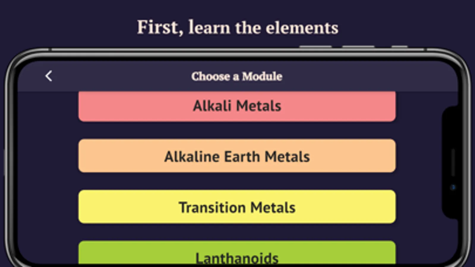 - 9 modules including Alkali Metals, Alkaline Earth Metals, Transition Metals, Lanthanoids, Actinoids, Post-transition Metals, Metalloids, Reactive Nonmetals and Noble Gases.