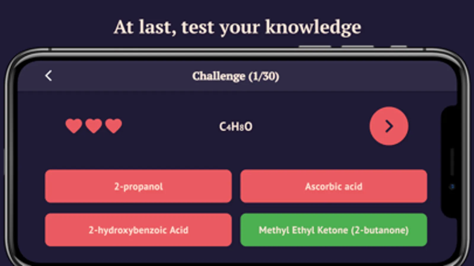 - 101 levels and 27 challenges teaching, training and testing 161 common chemical compounds/molecules closely related to our daily life.