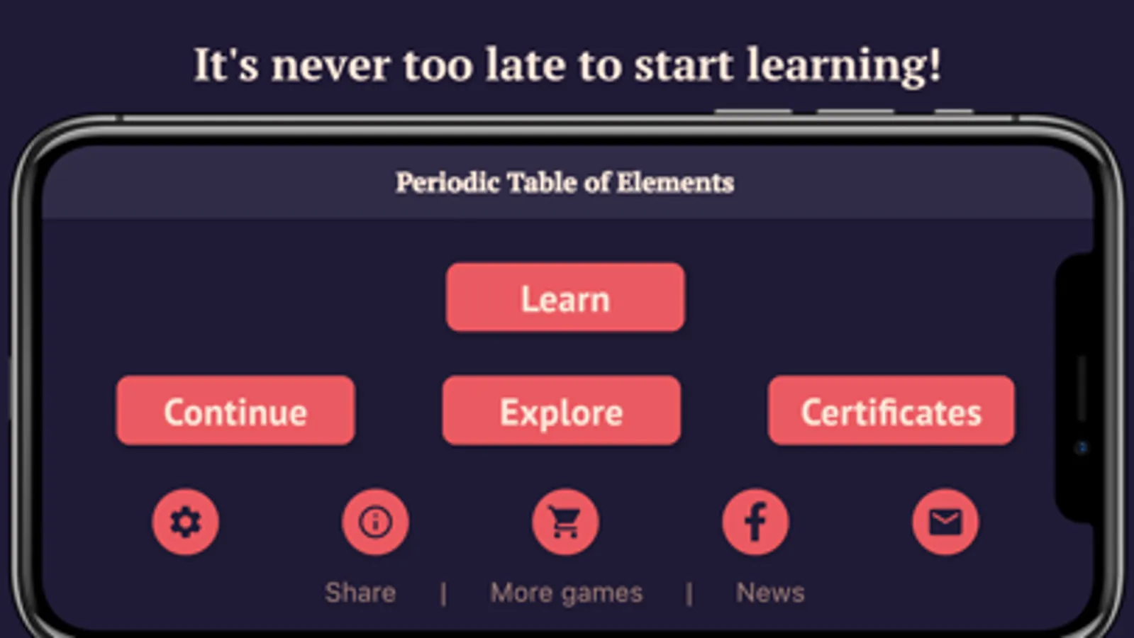 - 78 levels and 36 challenges teaching and training the symbols, names, atomic numbers and position (in the Periodic Table) of all the 118 discovered or synthesized elements of the Periodic Table.