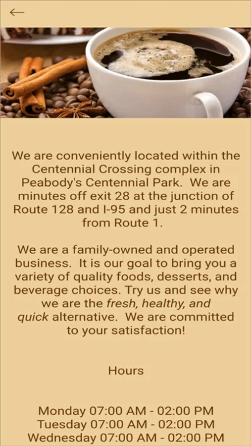 We are a family-owned and operated business. It is our goal to bring you a variety of quality foods, desserts, and beverage choices. Try us and see why we are the fresh, healthy, and quick alternative. We are committed to your satisfaction!